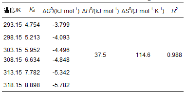 表 4 Mn@海藻酸微球吸附鹽酸四環(huán)素的熱力學(xué)參數(shù)