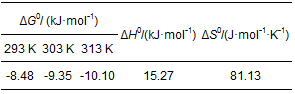 再根據方程 (5), 通過lnK0對1/T做圖 (圖 7), 由擬合直線的斜率和截距分別計算出ΔH0和ΔS0, 計算結果見表 3.