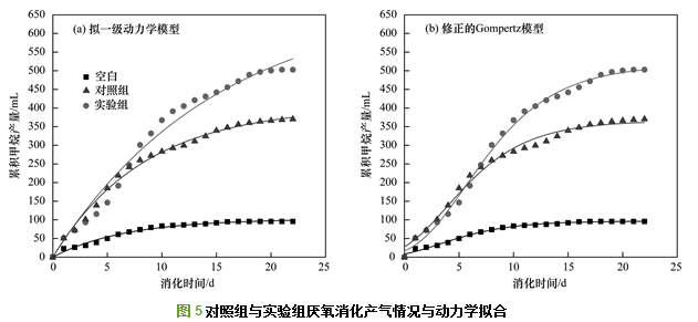 Bolado-Rodríguez等[35]的研究認為, 擬一級動力學模型主要應用于描繪和說明水解階段是厭氧消化過程限速步驟, 而修正的Gompertz模型則假設產甲烷過程是特定功能菌的生長過程, 由于消化過程中存在某種抑制因素, 因而限制了整個消化過程, 通常應用于產甲烷階段限速的厭氧消化過程.
