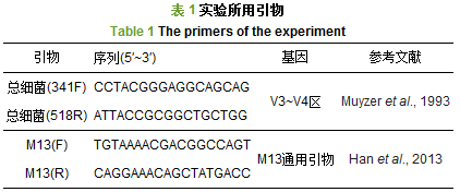 2.7 標(biāo)準(zhǔn)曲線的建立及總細(xì)菌16S rDNA V3~V4區(qū)的定量檢測(cè)