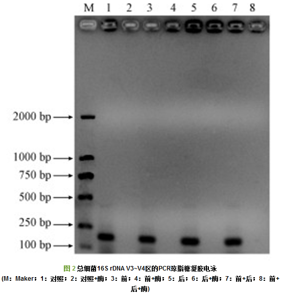 3.2 總細(xì)菌16S rDNA V3~V4區(qū)PCR瓊脂糖凝膠電泳