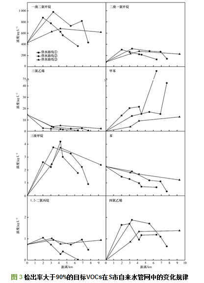 2.3 目標VOCs在自來水管網(wǎng)中的分布規(guī)律