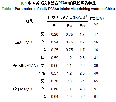 基于美國環境保護署健康風險評估方法, 應用場景風險評估模式, 結合迄今已發表的PFAAs檢測數據, 分析了中國七大流域PFAAs的污染水平和特征, 進而對中國成人、青少年、兒童的PFAAs日均飲水暴露量