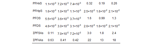 18種PFAAs日均飲水總暴露量為: