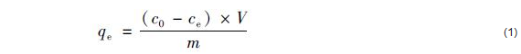 式中, qe(mg ·g-1)為吸附平衡時的吸附量; c0、ce(mg ·L-1)分別為污染物初始濃度和平衡濃度; V(L)為溶液體積; m(g)為凝膠質量.