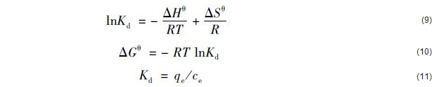 吸附過程中的熱力學參數通過公式(9)~(11)可計算焓變(ΔHθ)、熵變(ΔSθ)和吉布斯自由能(ΔGθ):