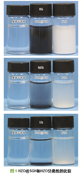 (2) HZO@SGH對氟離子的吸附容量明顯高于HZO和SGH. HZO@SGH在氟離子溶液中的可分離性優于HZO, 通過靜置1h后可完全沉降到溶液底部, 便于分離回收, 防止二次污染的可能.