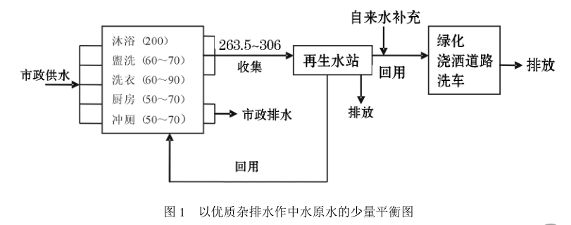 國(guó)家現(xiàn)行《住宅建筑設(shè)計(jì)規(guī)范》規(guī)定衛(wèi)生間與廚房排水應(yīng)分別排水直至室外。這樣采用優(yōu)質(zhì)排水作中水水源回用于沖廁、綠化等用途是切實(shí)可行的。我國(guó)城市住宅中用于沖廁和綠化等用水量占總用水量的 32 % 左右 , 而淋浴、盥洗和洗衣機(jī)用水占總用水量的 38 % 左右 , 若考慮 1 1 15 安全系數(shù) (32 % × 1 1 15 <38 %) , 由此可見住宅中淋浴、盥洗和洗衣機(jī)等優(yōu)質(zhì)雜排水再生后能滿足沖廁和綠化用水的要求。