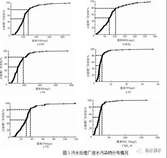 碳源是影響生物反硝化速率和過程的重要因素,分析圖2d,大部分污水處理廠BOD5/TN<2.59,80%的污水處理廠BOD5/TN<3.6,僅有10%的污水處理廠>4,數據表明大部分污水處理廠大多數情況下反硝化碳源不足,需要額外添加碳源,從而增加了污水處理廠運營成本。