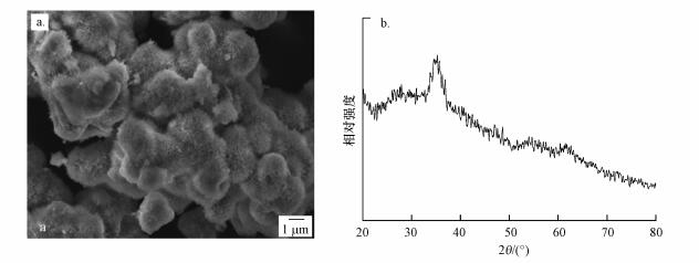 前人在對酸性礦山廢水體系施氏礦物的研究中發(fā)現(xiàn), 施氏礦物是外觀為球型, 且球表面長滿針刺的非晶型礦物(Liao et al., 2011;Liu et al., 2015b).本研究生物合成施氏礦物的形貌如圖 1a所示.