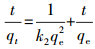 式中, qt為吸附t時(shí)的吸附量(mg·g-1); c0、ct分別為吸附前后Cu2+濃度(mg·L-1); V為溶液體積(L); m為凝膠質(zhì)量(g).