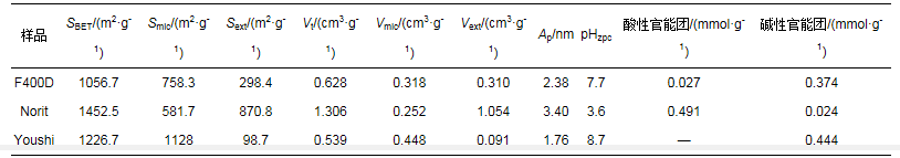 3 結果與討論(Results and discussion)3.1 活性炭的物化性質