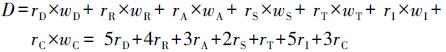 式中, D為地下水脆弱性指數(shù), rD為地下水埋深的分級值, wD為地下水埋深的權(quán)重值, rR為含水層凈補(bǔ)給的分級值, wR為含水層凈補(bǔ)給的權(quán)重值, rA為含水層介質(zhì)類型的分級值, wA為含水層介質(zhì)類型的權(quán)重值, rS為土壤類型的分級值, wS為土壤類型的權(quán)重值, rT為地形坡度的分級值, wT為地形坡度的權(quán)重值, rI為包氣帶介質(zhì)類型的分級值, wI為包氣帶介質(zhì)類型的權(quán)重值, rC為含水層滲透系數(shù)的分級值, wC為含水層滲透系數(shù)的權(quán)重值.