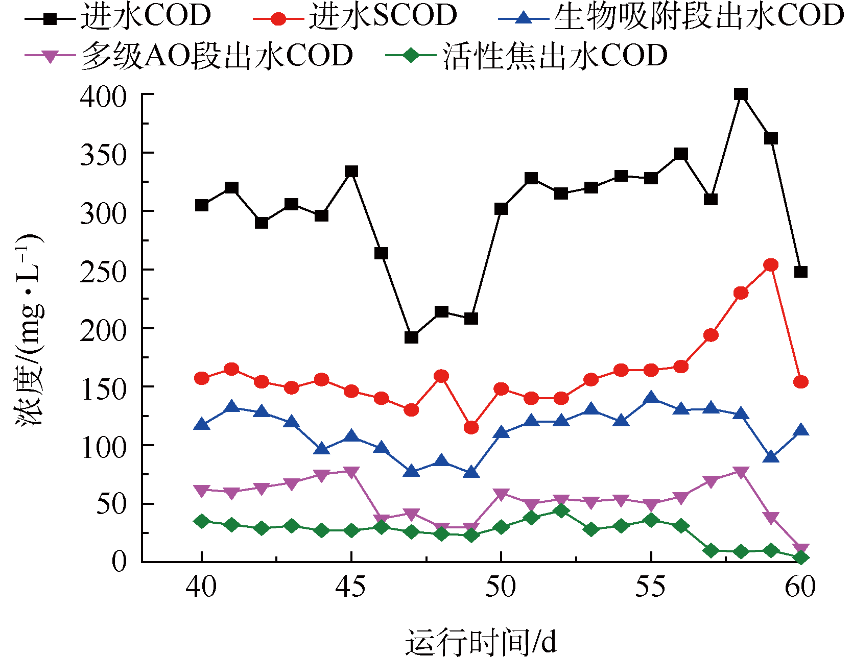 圖4 生物吸附-多級A/O-活性焦組合工藝有機物去除效果