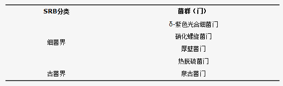 據不完全統計,已知的SRB共有40個屬137個種,分屬細菌界和古菌界(見表1),其中大多數屬于δ-變形菌綱。管道中SRB的菌群結構與廢水處理中有所不同:ITO等發現,在管道生物膜中,Desulfobulbus是SRB的優勢菌屬,占總SRB數量的23%,該菌屬以利用丙酸為主;而廢水處理中最主要的SRB為Desulfovibrio和Desulfotomaculum,Desulfovibrio是典型的氫營養型SRB。