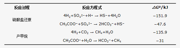 從熱力學角度看,硫酸鹽還原反應自由能的絕對值更大,反應更容易進行(見表3)。