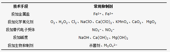 影響SRB和MA代謝活性和底物競爭能力的主要環境因素包括pH、溶解氧、水力條件、底物濃度、抑制劑等,實際工程中往往利用這些影響因素對H2S、CH4的產生及排放進行控制(見表5)。