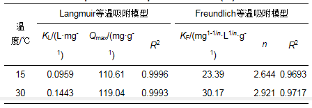 表 2 Cr(Ⅵ)在PEI-OCF上的等溫吸附模型參數