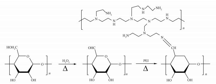 鑒于此, 本文以H2O2作氧化劑, 首先將纖維素上的羥基氧化為醛基, 然后通過席夫堿反應直接接枝PEI, 制備PEI改性纖維素纖維(PEI-OCF)吸附劑.整個制備過程不使用任何交聯劑, 綠色環保.同時, 研究PEI-OCF對Cr(Ⅵ)的吸附特性, 探討相關的反應機理, 以期為水中Cr(Ⅵ)的污染治理提供新材料.