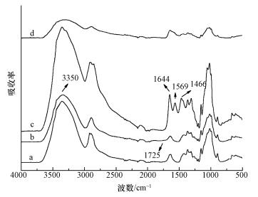 圖 3 CF(a)、OCF(b)、PEI-OCF(c)和吸附Cr(Ⅵ)后的PEI-OCF(d)的ATR紅外光譜圖