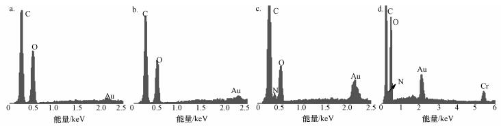 圖 5 CF(a)、OCF(b)、PEI-OCF(c)和吸附Cr(Ⅵ)后的PEI-OCF(d)的EDX圖