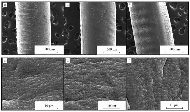 圖 6 CF(a)、OCF(b)和PEI-OCF(c)的SEM圖