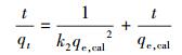 式中, qt為反應時間t的吸附量(mg·g-1);qe, exp和qe, cal分別為試驗和模擬計算獲得的平衡吸附量(mg·g-1);k1為準一級速率常數(min-1);k2為準二級速率常數(g·mg-1·min-1);t為吸附時間(min).