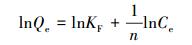 式中, Qe為平衡吸附量(mg·g-1), Ce為吸附平衡時溶液中剩余Cr(Ⅵ)濃度(mg·L-1), Qmax為理論飽和吸附量(mg·g-1), KL為Langmuir常數(L·mg-1), KF為Freundlich常數(mg1-1/n·L1/n·g-1), n與吸附力推動大小及吸附位的能量有關.