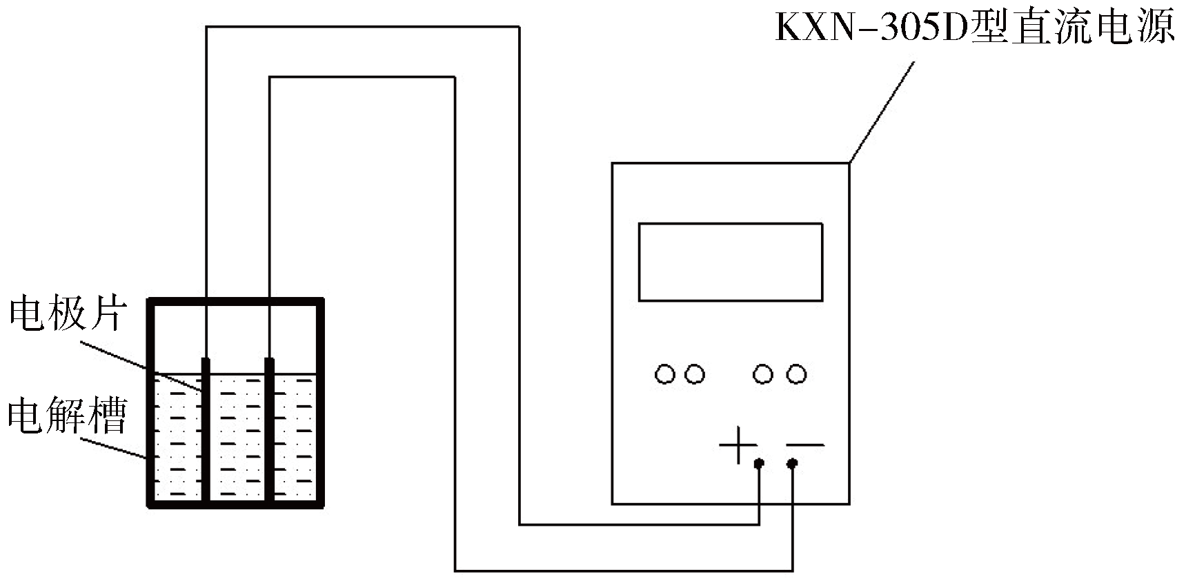 實驗裝置如圖1所示,其中釕銥陽極購自寶雞市祺鑫鈦業有限公司,尺寸為90 mm×50 mm×0.5 mm(IrO2-RuO2涂層厚度為10 μm),石墨陰極購自海門市科興碳業有限公司,尺寸為90 mm×50 mm×2 mm,電極使用時浸水深度都是60 mm。KXN-305D型直流電源購自深圳市兆信電子儀器設備有限公司。