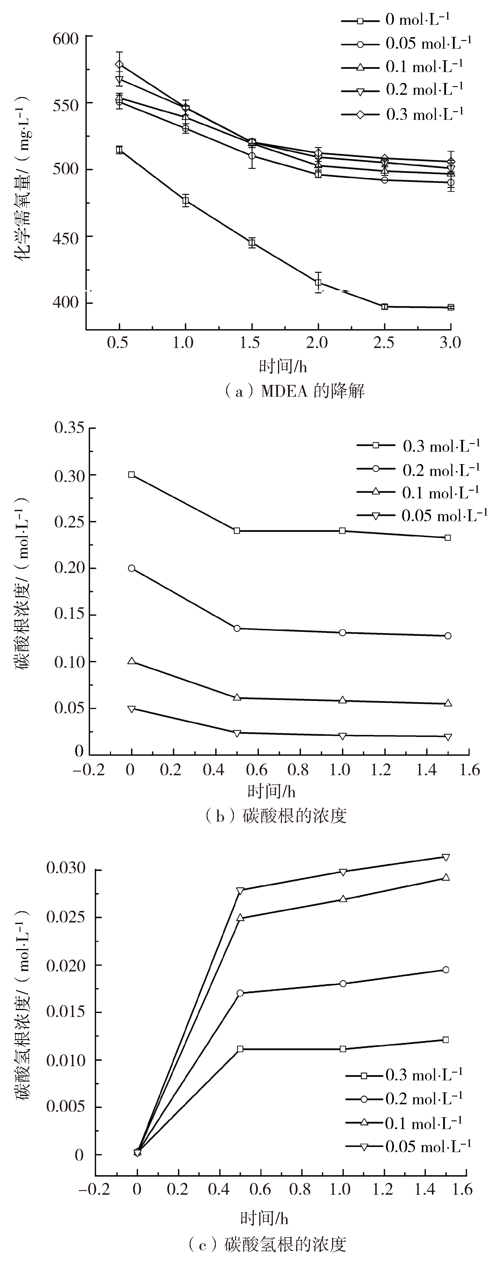 2.3 碳酸氫根離子對MDEA降解的影響