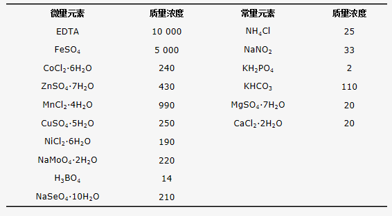 實驗采用人工配水,進水通過NaHCO3將pH控制在7.20±0.20,NH4+-N和NO2−-N分別由NH4Cl和NaNO2提供,微量元素參照文獻中的數值,微量元素為1.5 mL·L−1。表1為配水成分組成。接種污泥取自成功啟動ASBR中的活性污泥,脫氮性能良好。其中MLSS為3 300 mg·L−1,MLVSS為2 500 mg·L−1。