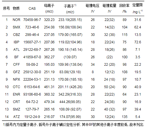 表 2 OMPs分析的質譜條件