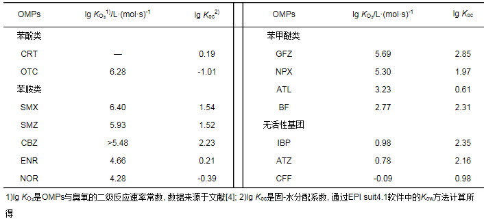 表 3 OMPs的臭氧二級反應速率和固-水分配系數