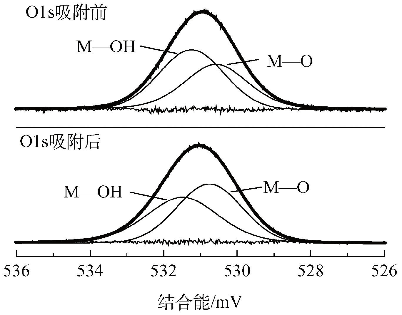 圖7 LDHns-F3吸附磷前后O1s的XPS圖譜