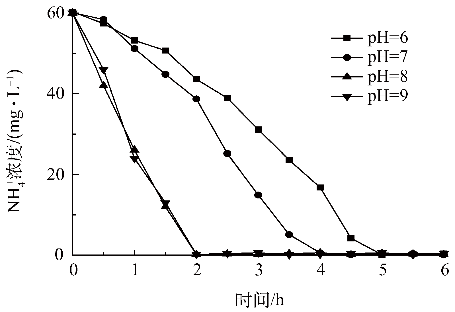 圖6 pH對氨氮濃度變化的影響