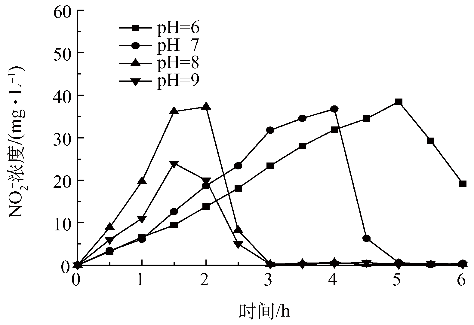圖7 pH對亞硝酸鹽濃度變化的影響
