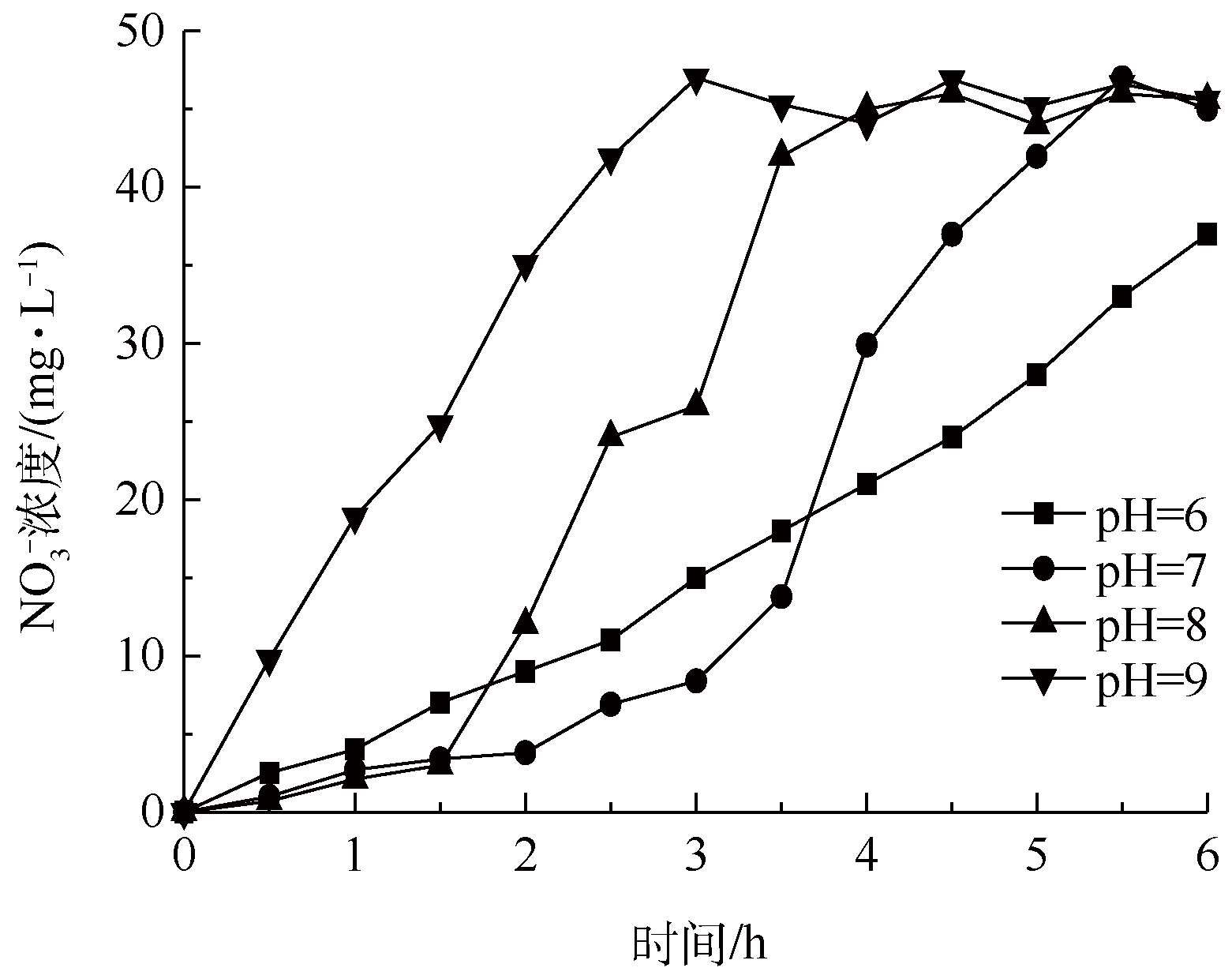 圖8 pH對硝酸鹽濃度變化的影響