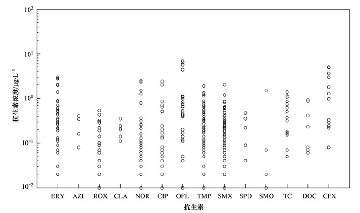 1 污水中抗生素的濃度水平