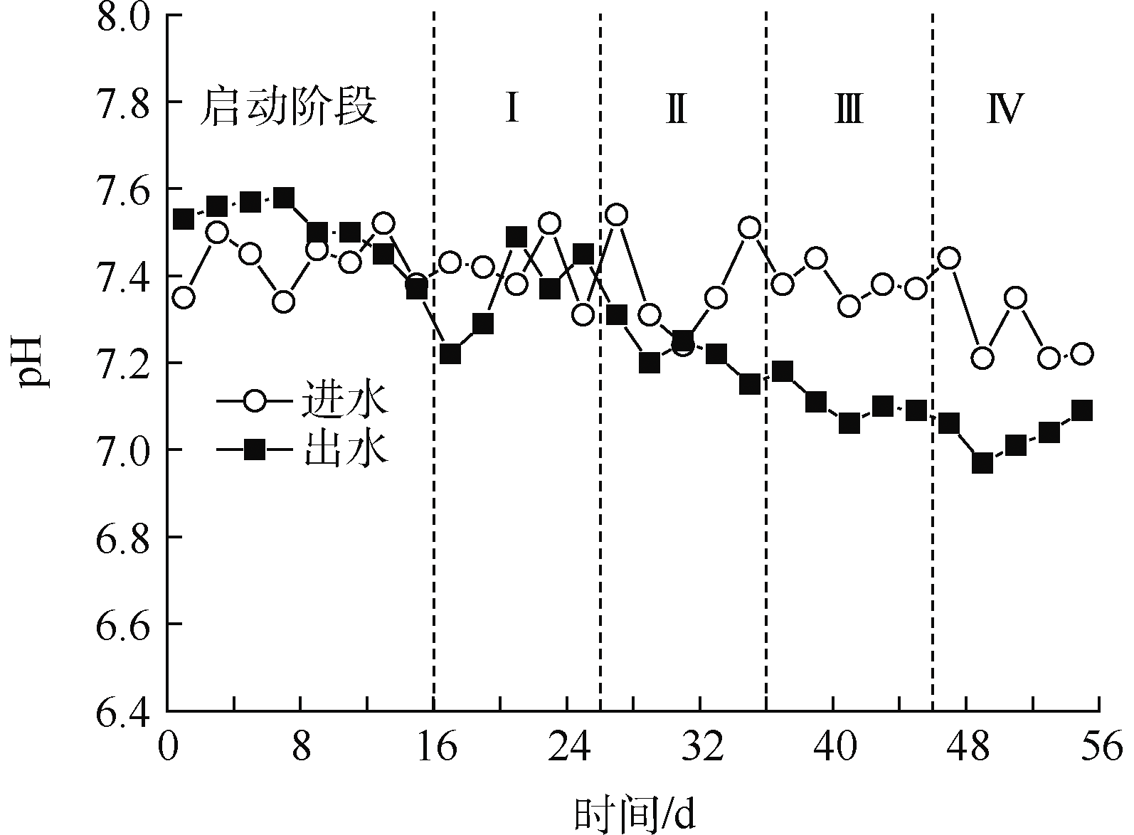 圖7 pH隨時間的變化