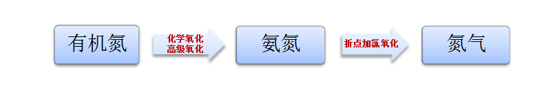 化學法,通過氧化使氮化合物直接從有機氮、氨氮直接轉化為氮氣: