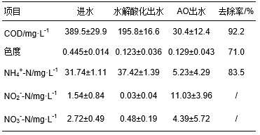 表 1 水解酸化-AO工藝穩(wěn)定狀態(tài)運(yùn)行性能