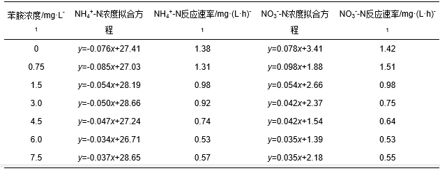 表 3 苯胺抑制硝化試驗(yàn)反應(yīng)速率