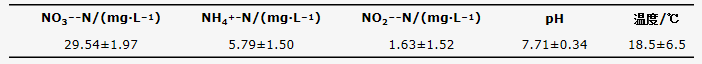 實驗水質參照華北地區中度污染的地下水水質,使用KNO3、NH4Cl和NaNO2進行配制,如表1所示。本研究所用化學藥品均為分析純。