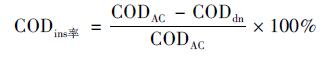 SNEDPR系統厭氧段有機碳源的消耗量(CODAC)主要包括兩部分:一部分是通過異養菌的外源反硝化作用去除的COD量(CODdn), 見公式(2), 另一部分是通過PAOs和GAOs的作用儲存為內碳源的COD量(CODins), 而CODins率(%)指CODins占CODAC的質量分數[23], 見公式(3).PAOs在內碳源PHA儲存過程中的貢獻比例(PPAO, An)的計算方法見公式(4).