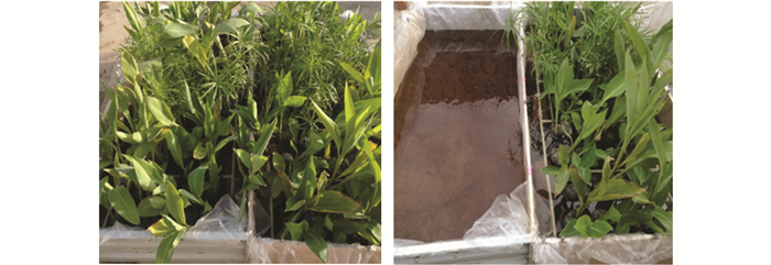 含鹽模擬廢水由內蒙古某煤化工企業獲得的結晶鹽復配而成, 結晶鹽主要成分為NaCl和Na2SO4, 有少量鈣、鎂鹽.根據水池中水的體積, 配制成TDS為6 000 mg ·L-1的含鹽廢水.由于結晶鹽中氮磷濃度較低, 為了有利于植物生長, 含鹽廢水中加入了一定量的學校生活污水.最終水體的參數為:pH 7.0, TDS 6 000 mg ·L-1、COD 380 mg ·L-1、TN 14 mg ·L-1和TP 4.5 mg ·L-1.每個水池水量800 L.