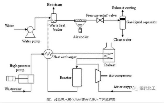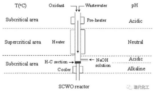 在過去的三十年中,超臨界水(TC≥374℃;pc≥22.1MPa)已成為化學(xué)中一種被廣泛研究的介質(zhì)。其中,最熱門的應(yīng)用研究之一是利用超臨界水氧化(SCWO)處理高濃度有機(jī)廢水。這個(gè)工藝可以視作濕式氧化(WAO)技術(shù)的進(jìn)一步拓展。與SCWO工藝相比,WAO工藝的反應(yīng)時(shí)間需要數(shù)十分鐘,而且很難實(shí)現(xiàn)廢水內(nèi)有機(jī)物的完全降解,廢水需要追加生物法等后續(xù)處理工序。
