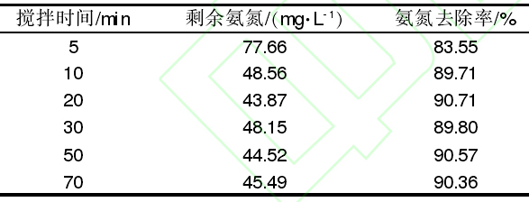 表4反應(yīng)時間對氨氮去除率的影響