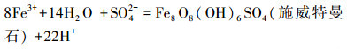 在適宜環境條件下, A.ferrooxidans氧化Fe2+成Fe3+后, 體系成礦主要反應方程式如下: