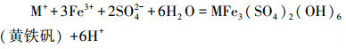 當體系存在一定濃度一價陽離子時(M+=Na+、K+、NH4+), Fe3+會水解生成黃鐵礬: